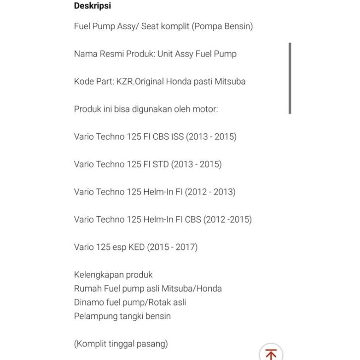 fuel pump Fuel pump Assy 16700-KZR305 Fuelpump Assy Vario 125 fi OLD - Vario 125 esp LED th 2012 sampai 2017 - ASLI HO