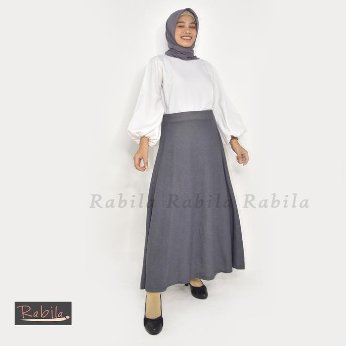 Rok Panjang Gliter Lebar Mode Mayung - Bawahan wanita Muslim Bahan Waffle Crape - ABU