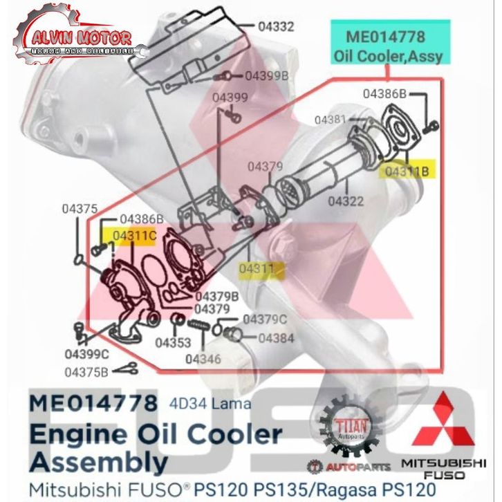 OIL COOLER ASSY + ELEMENT KOMPLIT MITSUBISHI COLT DIESEL PS120 PS135 LAMA PS120 RAGASA 4D34 ASLI TITAN