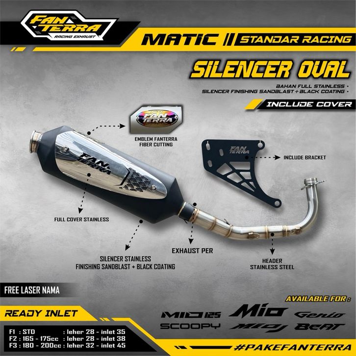 TERLARIS KNALPOT STD RACING SILINCER OVAL • MIO, STYLO, VARIO, BEAT, SCOOPY, PCX, N-MAX, AEROX, VESPA, ADV, MIO J, FINO