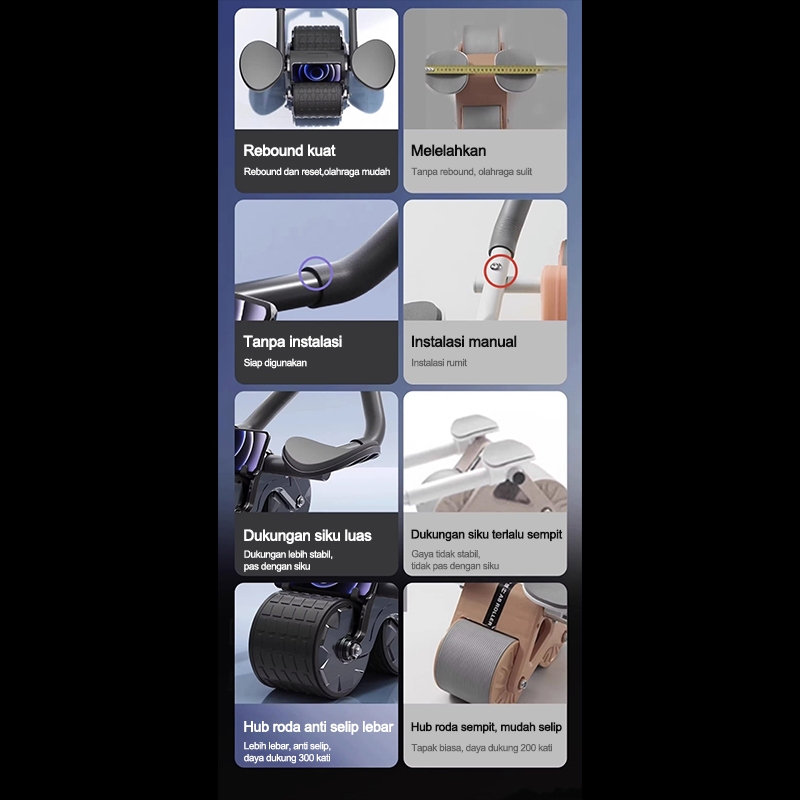 Alat fitnes perut ramping Roda siku rebound Ab Wheel 2in1 Ab Roller