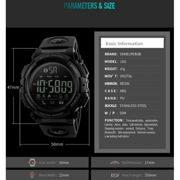 FLASH SALE JAM TANGAN PRIA SMARTWATCH BLUETOOTH SKMEI 1303 BLACK WATER RESIST 50M