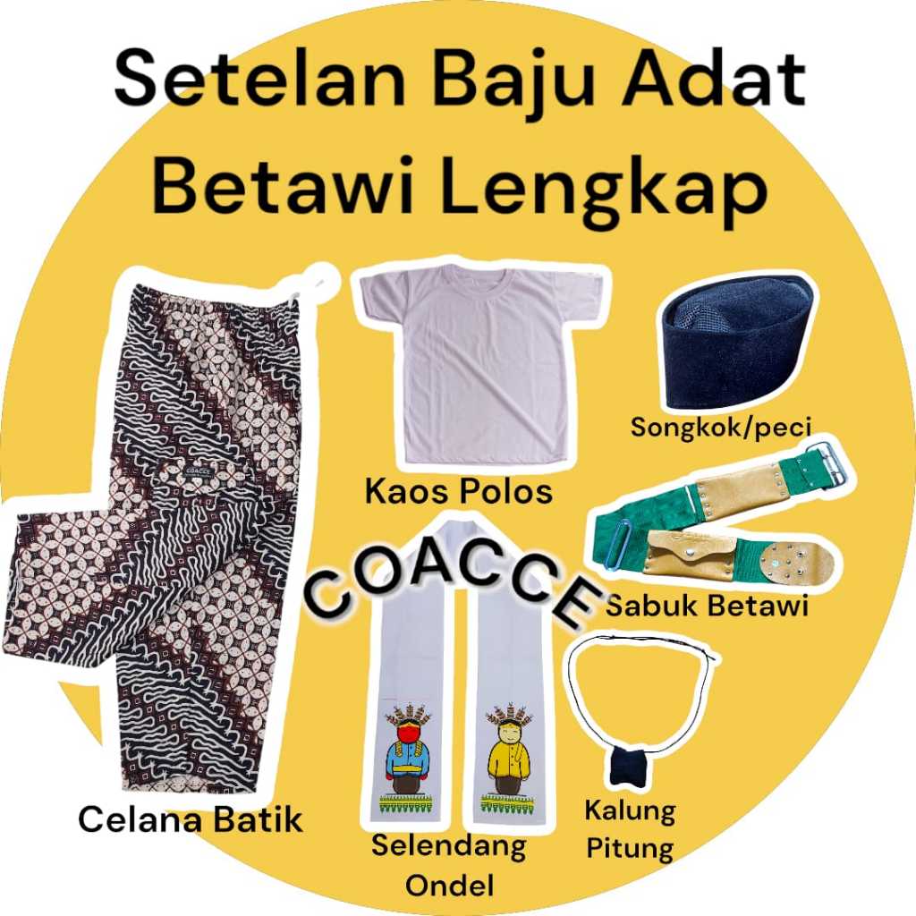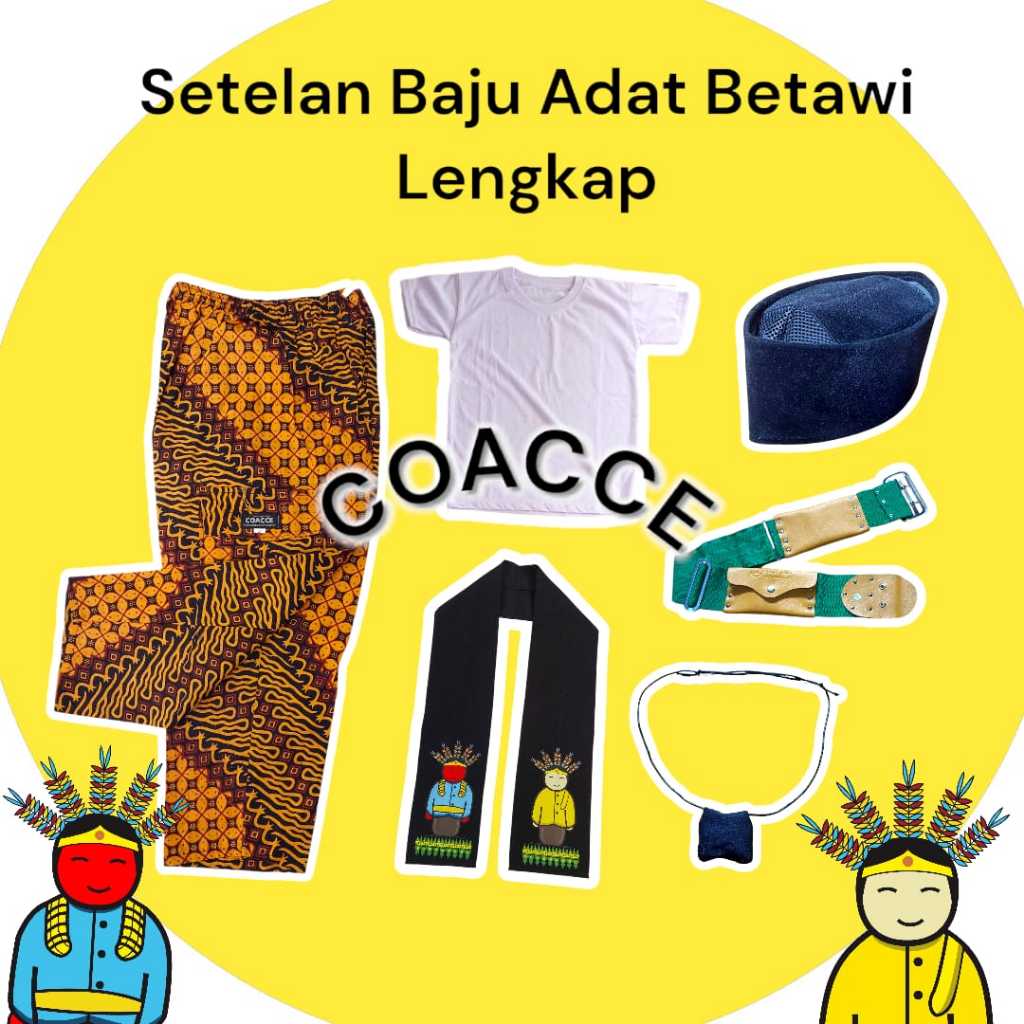 [Star] Setelan Baju Adat Betawi anak dan Dewasa Lengkap Paket Celana Batik Motif Ondel