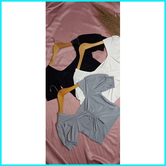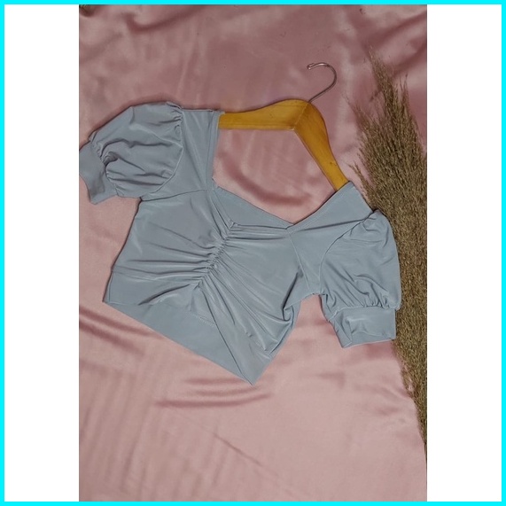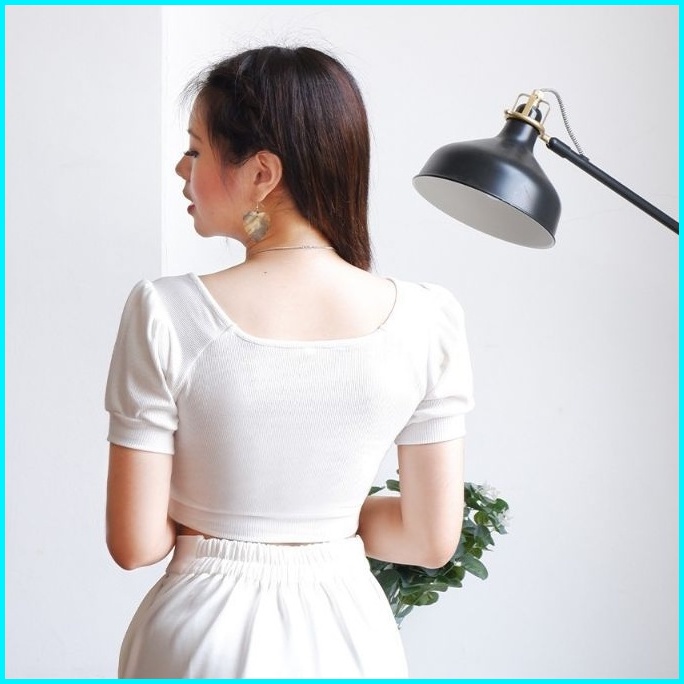 Fiore Crop T-shirt Wanita Crop Top Tangan Balon Korean Top Sexy 013