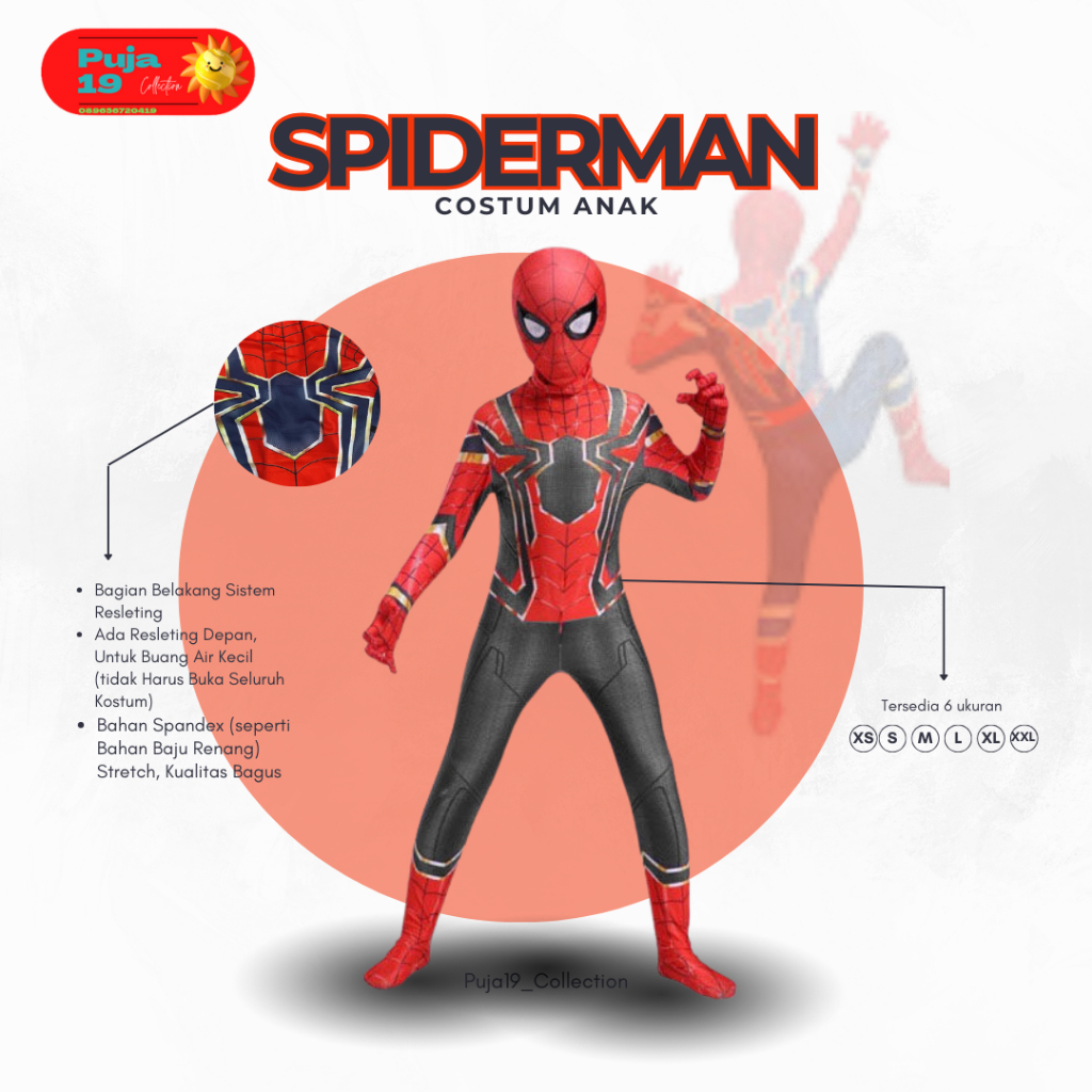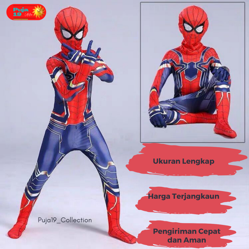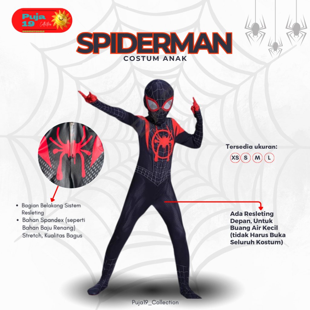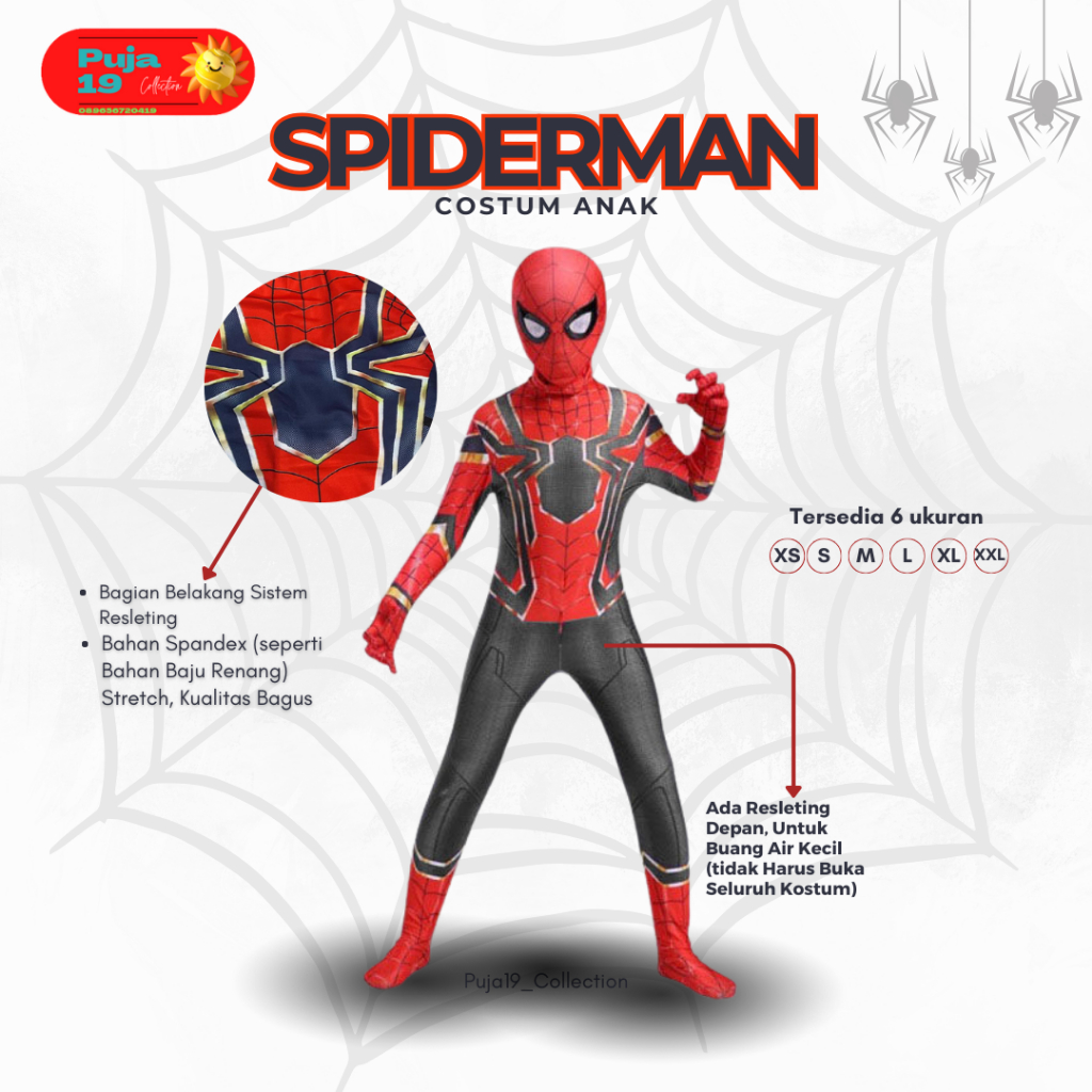 [Star] SPECIAL DISCOUNT Costum Baju Spiderman Anak bahan premium melar paket lengkap topeng senjata sleting depan
