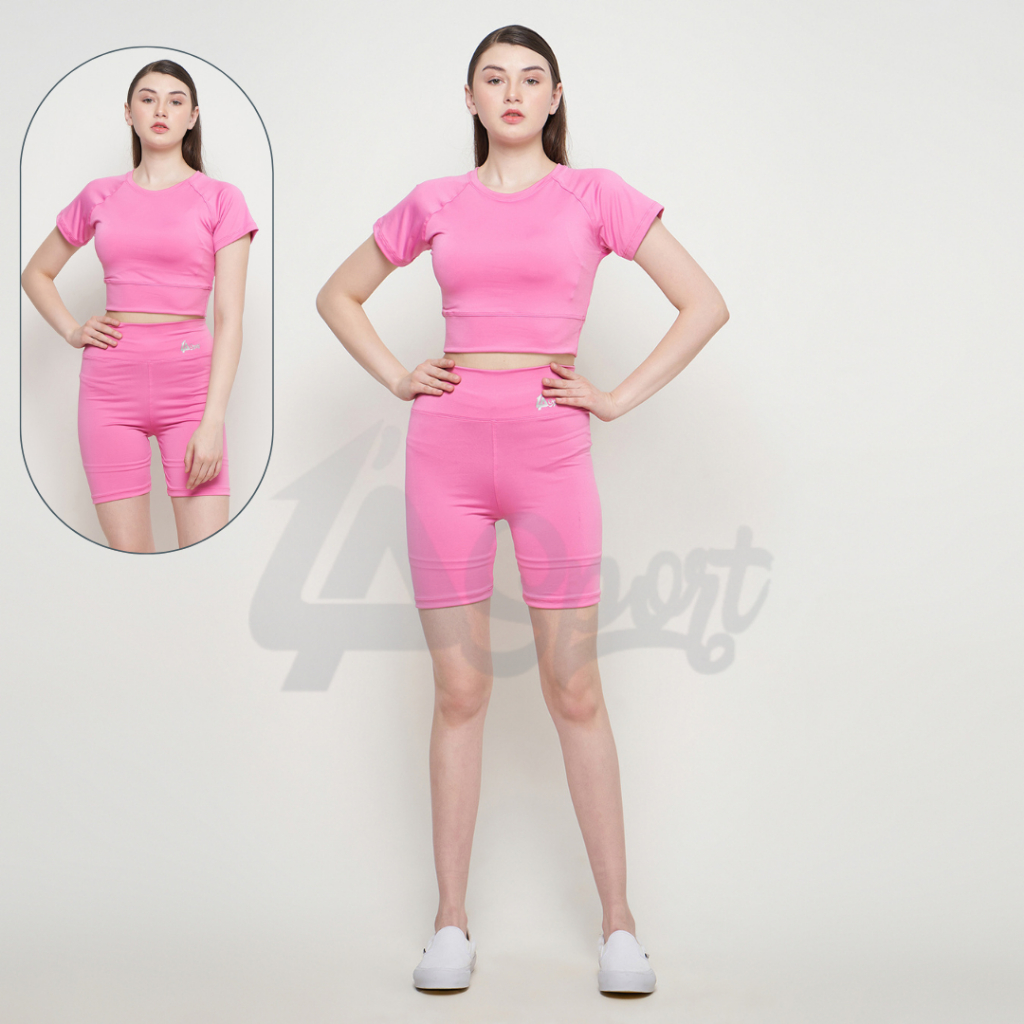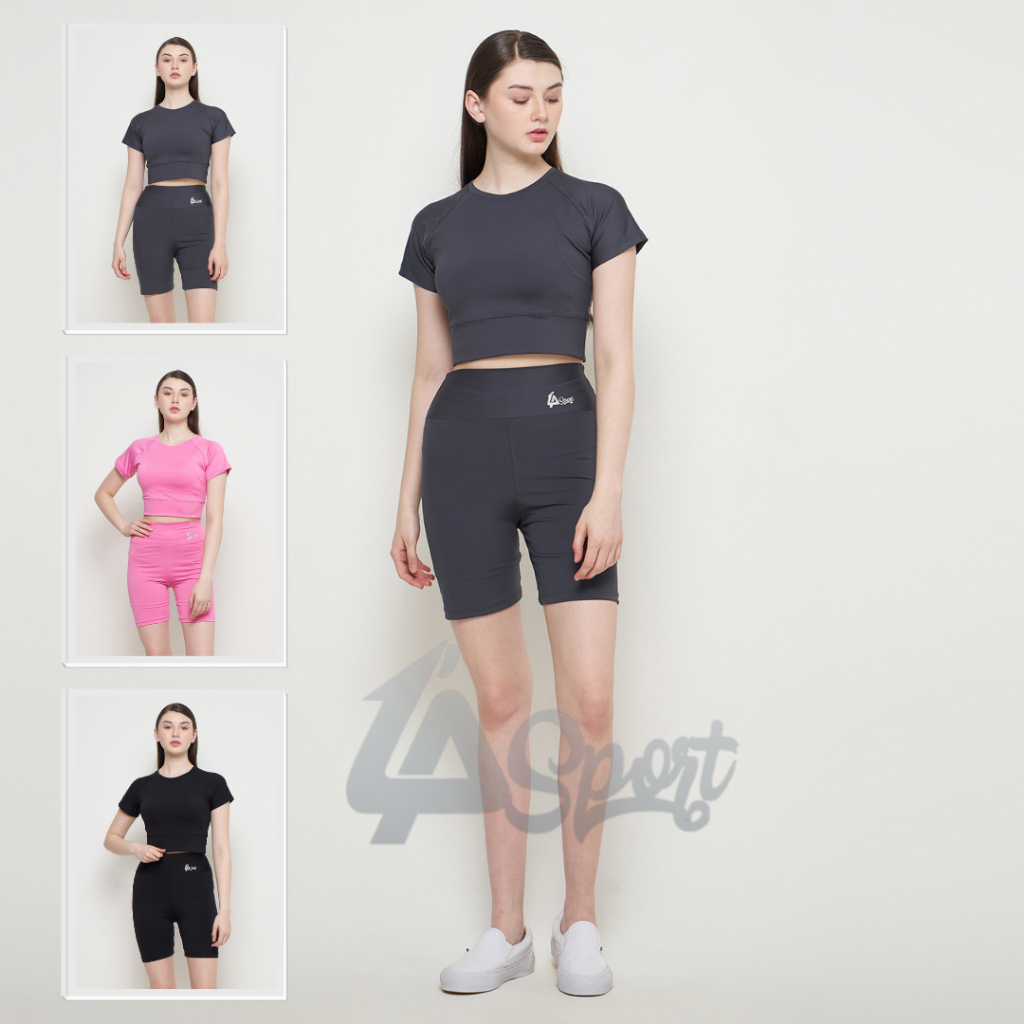 I'A SPORT Set Olahraga Crop Celana Pendek / Set Olahraga Wanita / Set Zumba Wanita / Set Aerobic Wanita / Set Senam