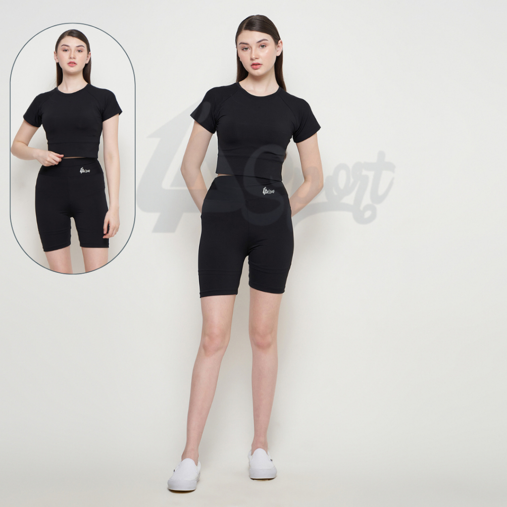 I'A SPORT Set Olahraga Crop Celana Pendek / Set Olahraga Wanita / Set Zumba Wanita / Set Aerobic Wanita / Set Senam