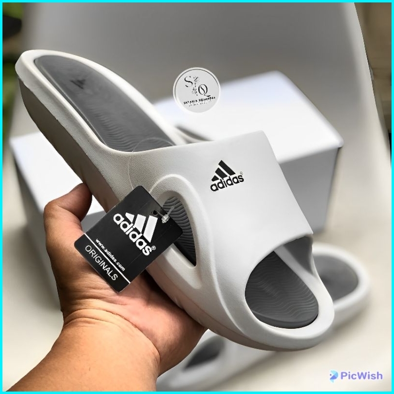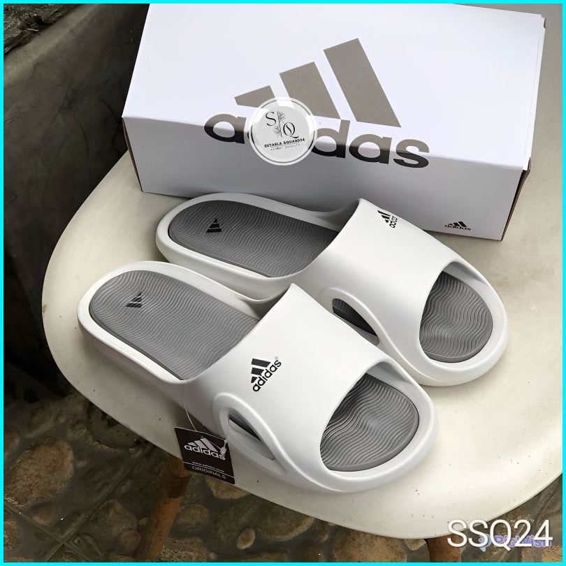 Sandal Slide Adiiidasss Adicane White Grey Sandal Slip-on Pria-wanita Sandal Adidas