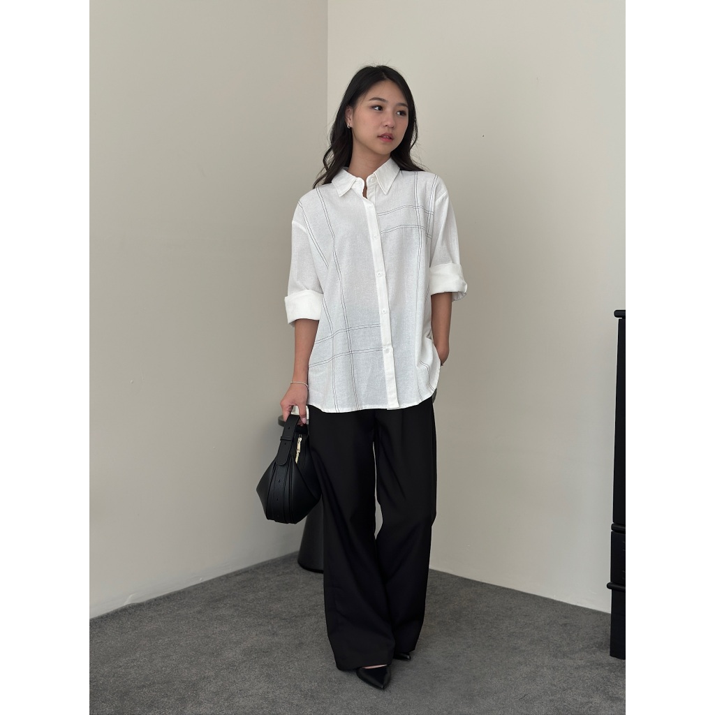 ASOKA Twila Shirt 2289 - Contrast Stitch Oversize Blouse Long Sleeve - Atasan Wanita Kemeja