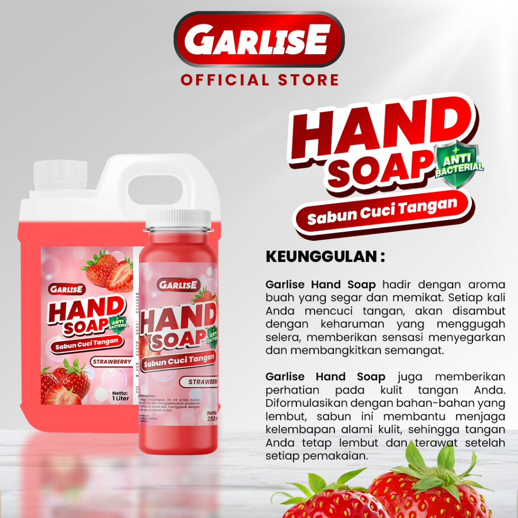GARLISE HANDSOAP AROMA STRAWBERRY 1 LITER SABUN CUCI TANGAN ANTIBACTERIAL HIGHIENIS