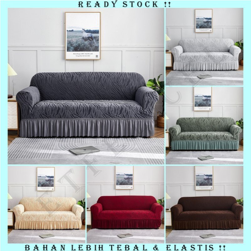 ETFELICEL Sofa Cover Jacquard With Skirt/Sarung Alas Penutup Sofa Renda Elastis Corak Motif Abstract