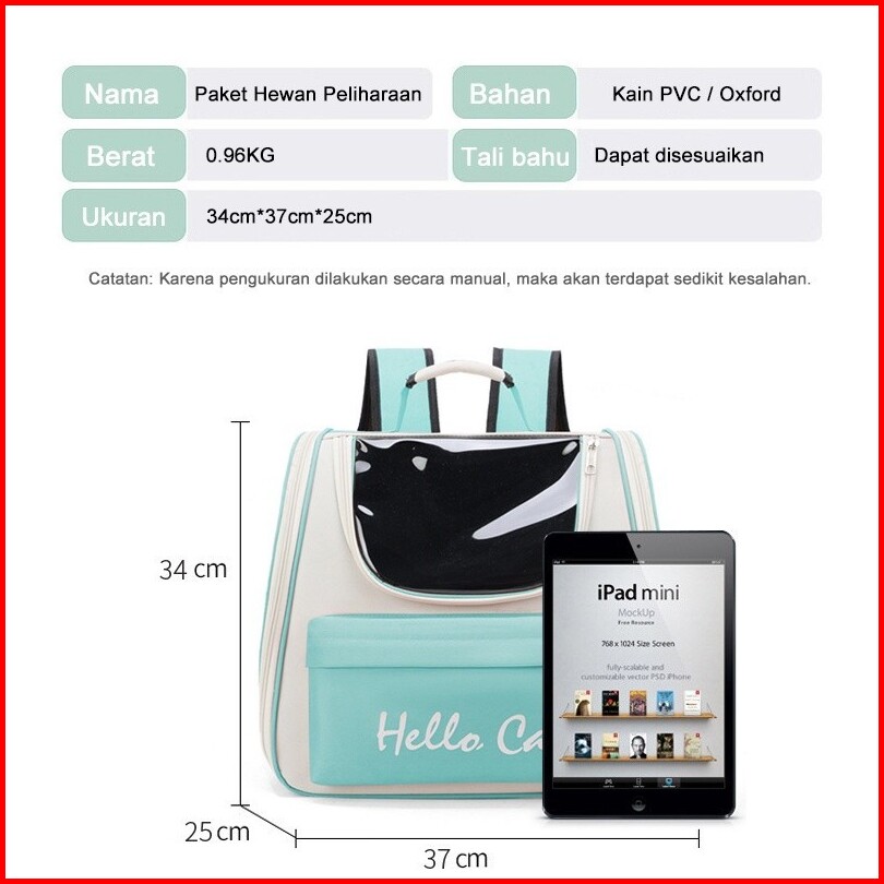 Chongchong - Tas Ransel Hewan Peliharaan Tas Kucing Hello Cat M37 Pet Travel Bag