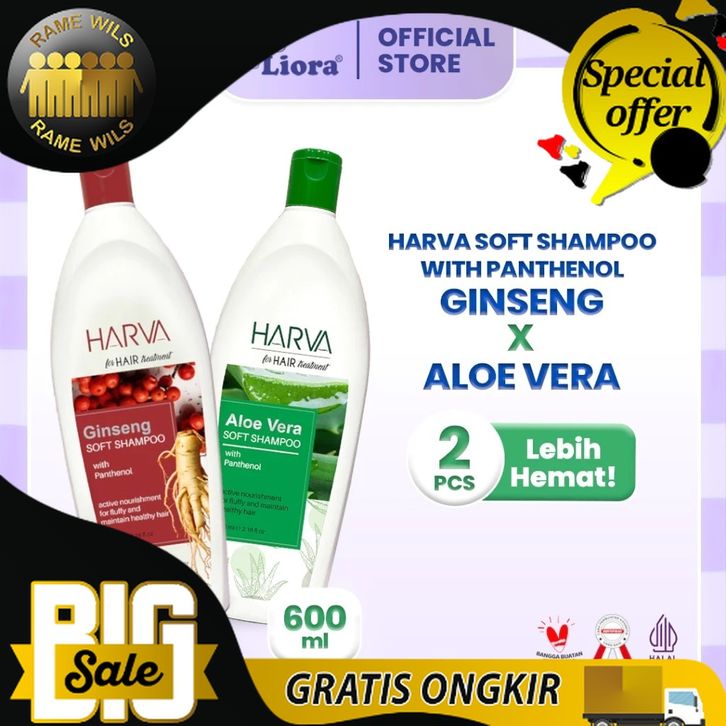 HARVA Shampoo /ALOVERA Soft & Smooth 600ML | Shampo Atasi Rontok Menghaluskan Rambut