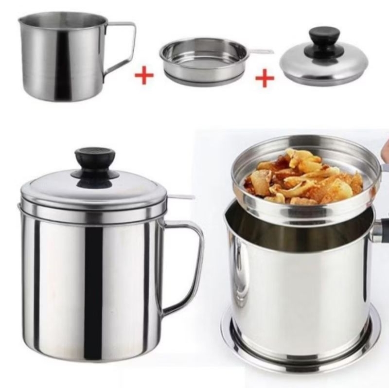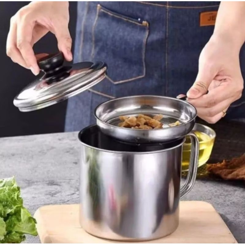 oil pot 1.3Liter gelas stainless tempat minyak saringan stainless