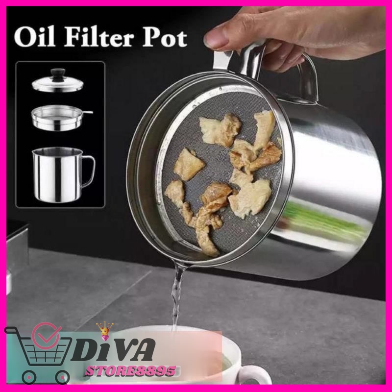 OIL POT SARINGAN STAINLESS MINYAK GORENG SISA WADAH JELANTAH divastore