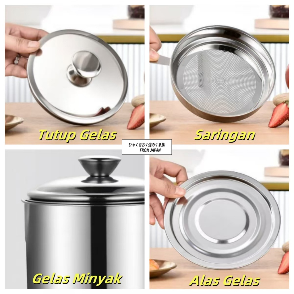 OIL POT SARINGAN STAINLESS MINYAK GORENG SISA WADAH JELANTAH 1.3L