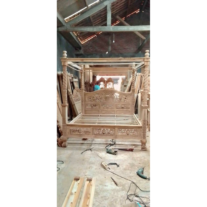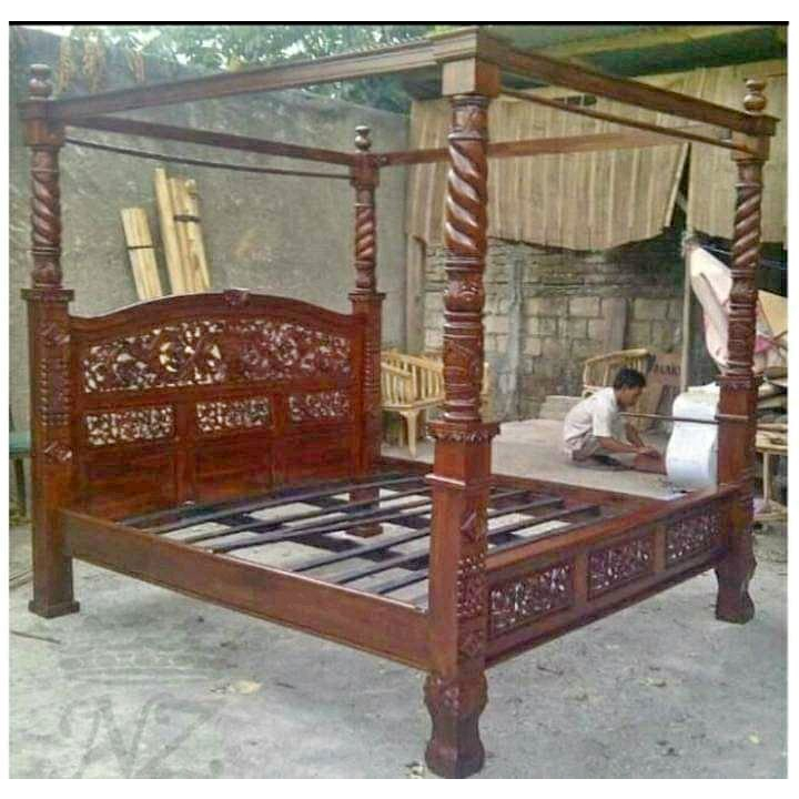 [Star] Dipan Kayu Jati - Dipan Ranjang Tempat Tidur Ukir Jepara Rahwana Tiara Kanopi TERMURAH FREE ONGKIR