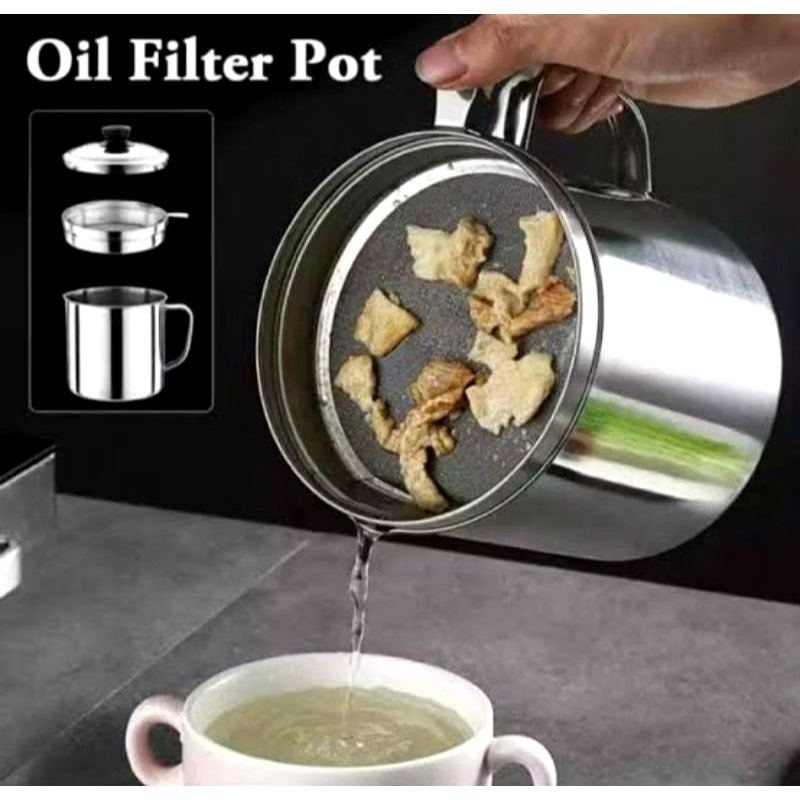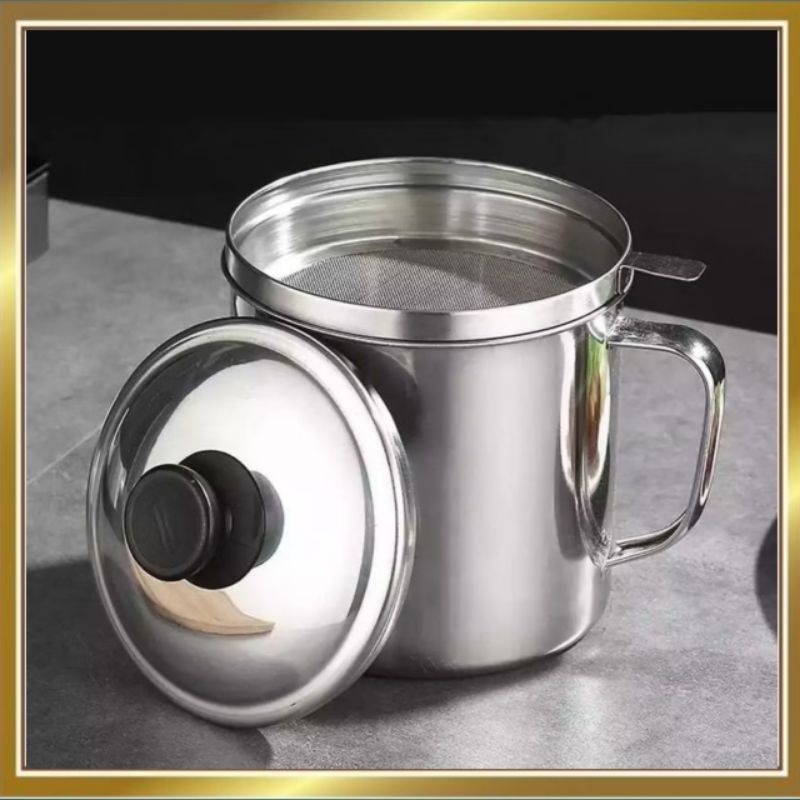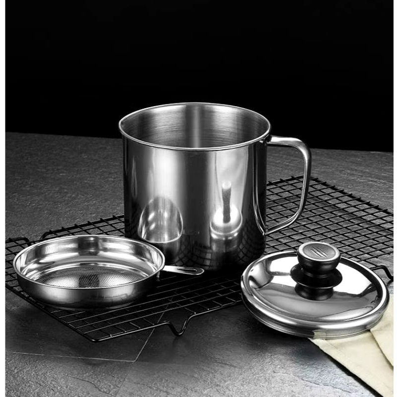 Oil Pot Saringan Minyak Bekas 1.3 Liter Stainless Steel | Penyaring Minyak Jelantah Wadah Penyimpan Minyak Goreng Anti K