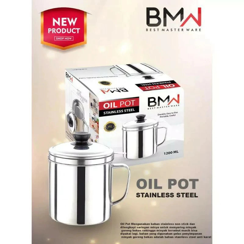 BMW Oil Pot Stainless Steel 1200ml easy use portable saringan tempat minyak goreng setelah masak