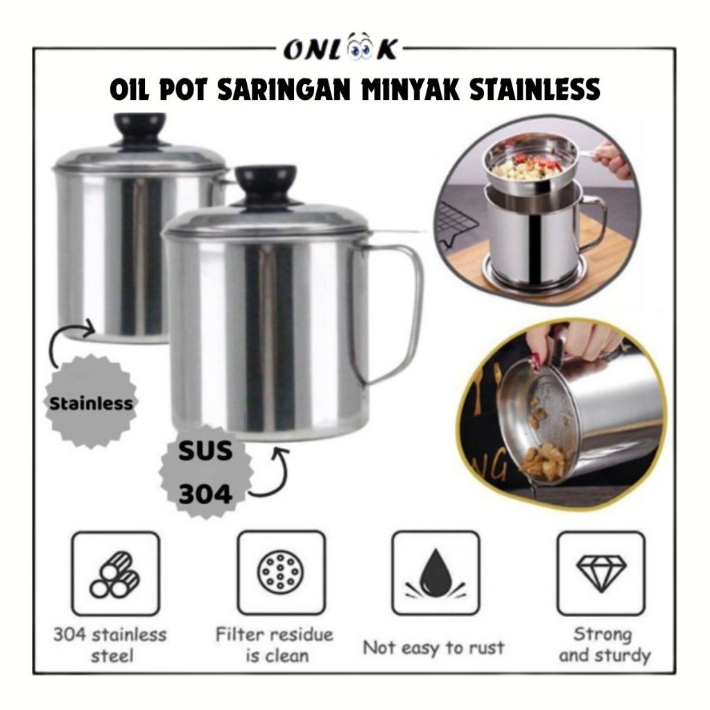 Wadah Saringan Minyak Stainless Steel 1L / Oil Pot With Strainer Gelas Penyaring Minyak - ONLOOK