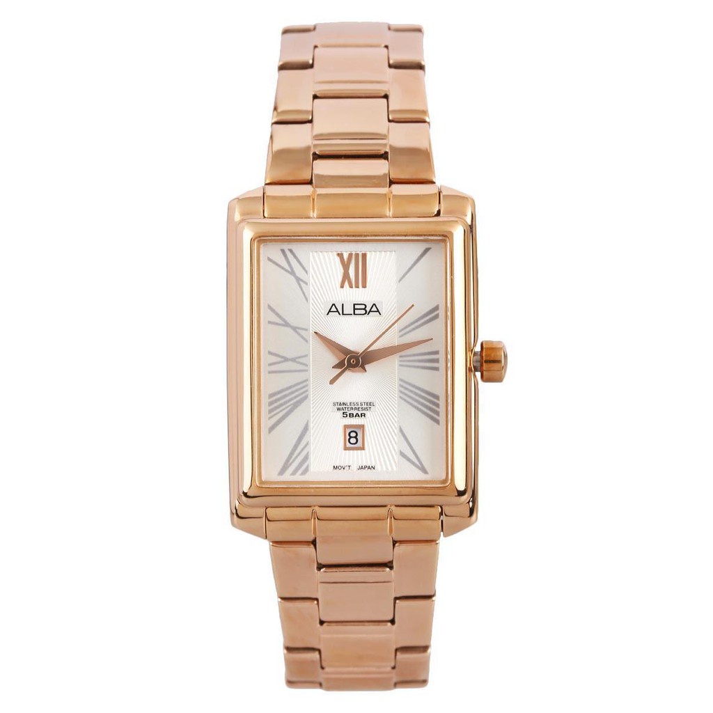 JAM TANGAN WANITA ALBA KOTAK AS9B50 / AS9B50X1 QUARTZ WHITE PATTERN ROSE GOLD GARANSI RESMI CASUAL KERJA BRANDED TERBARU