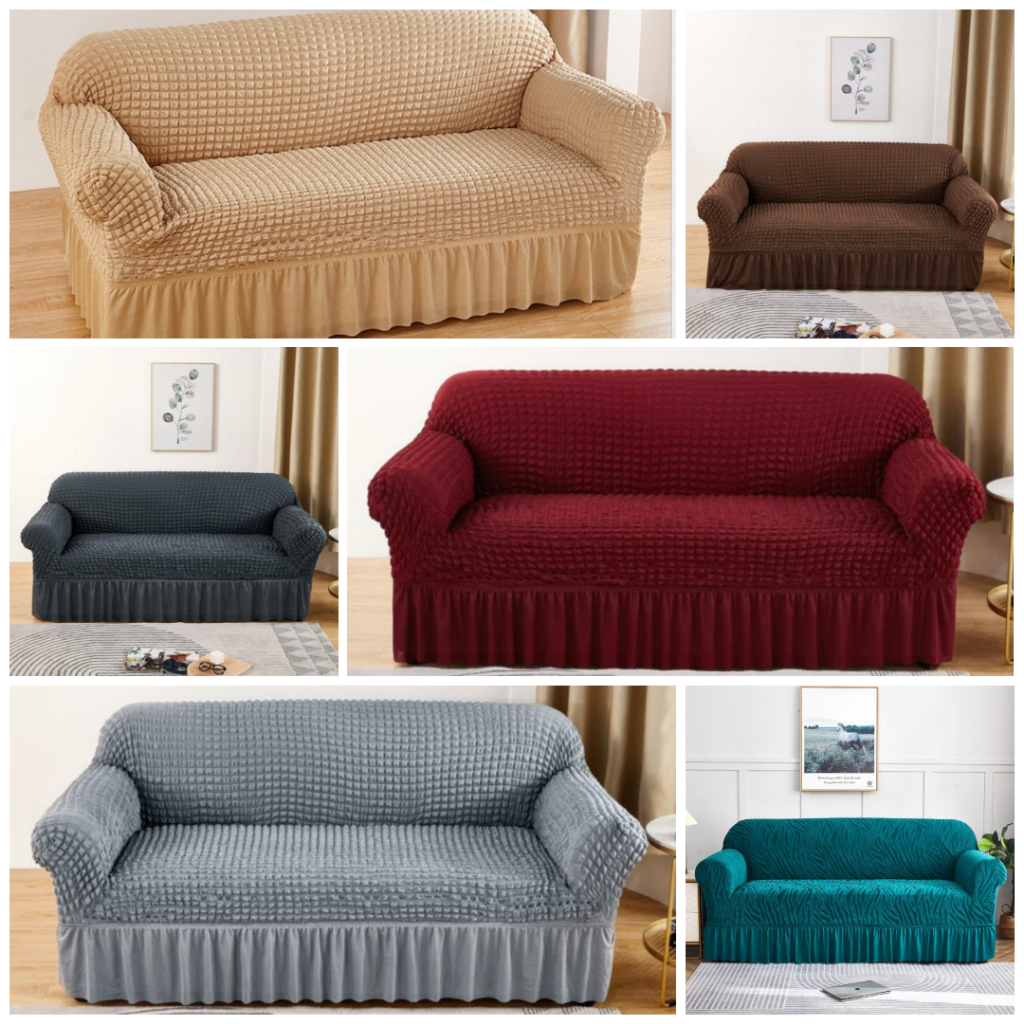 LECARRE Sofa Cover With Skirt Stripe Stretch / Sarung Alas Penutup Sofa Renda Elastis