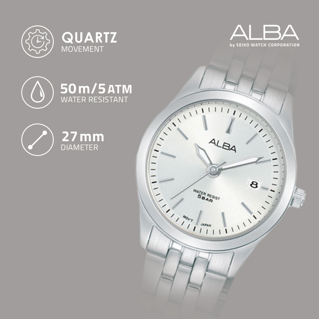 ALBA PRESTIGE JAM TANGAN WANITA AH7CF5 / AH7CF5X1 QUARTZ SILVER WHITE DIAL STAINLESS STEEL ORIGINAL OFFICIAL STORE