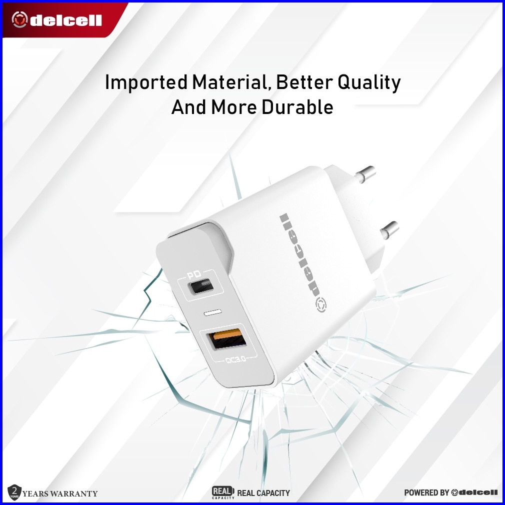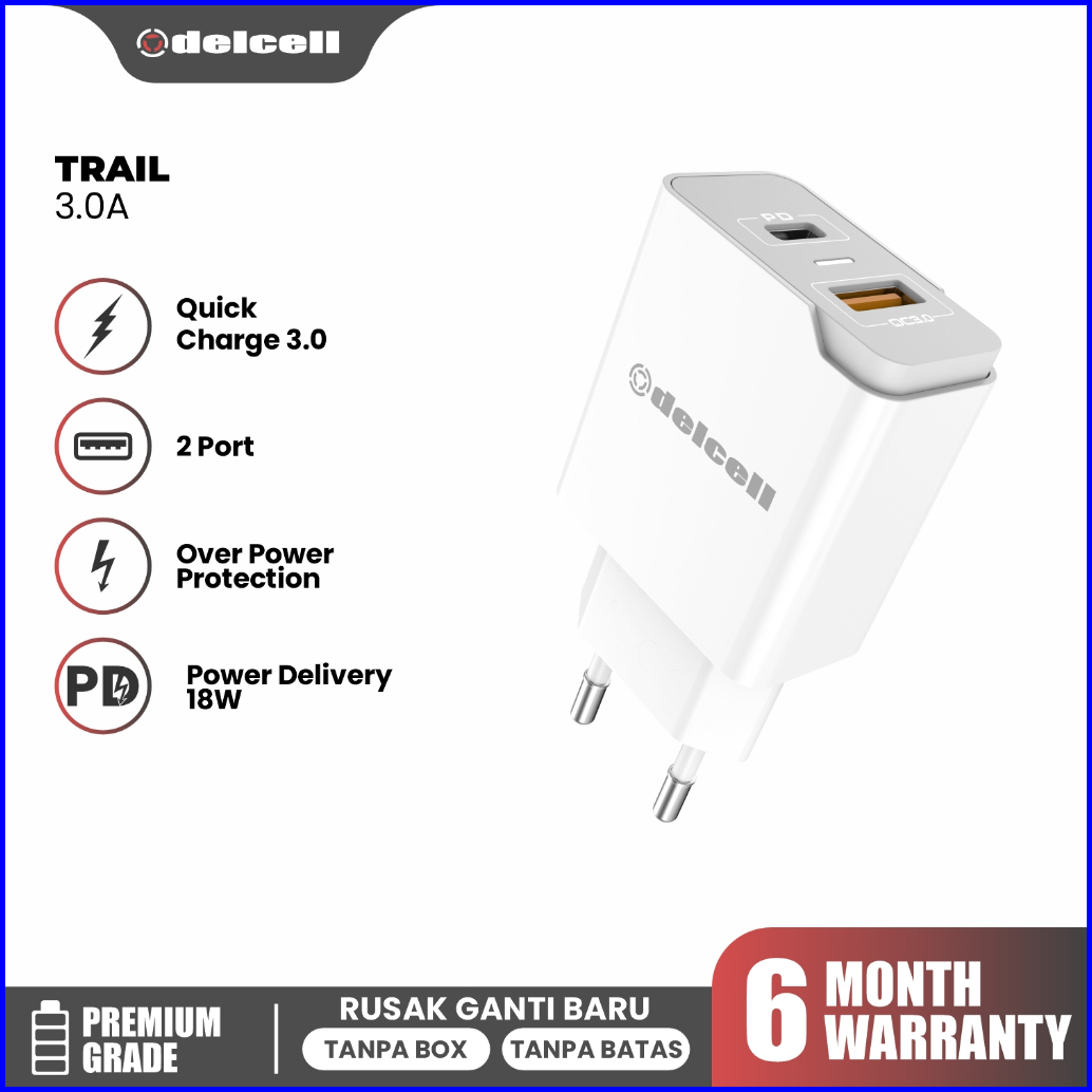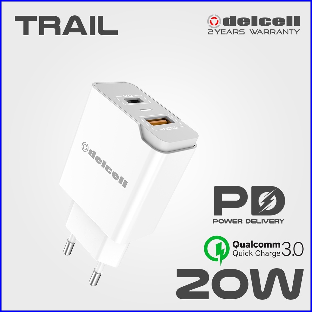 Delcell Trail Adaptor Charger Original Qc 3.0 Pd 20w 2 Output Smart Charger