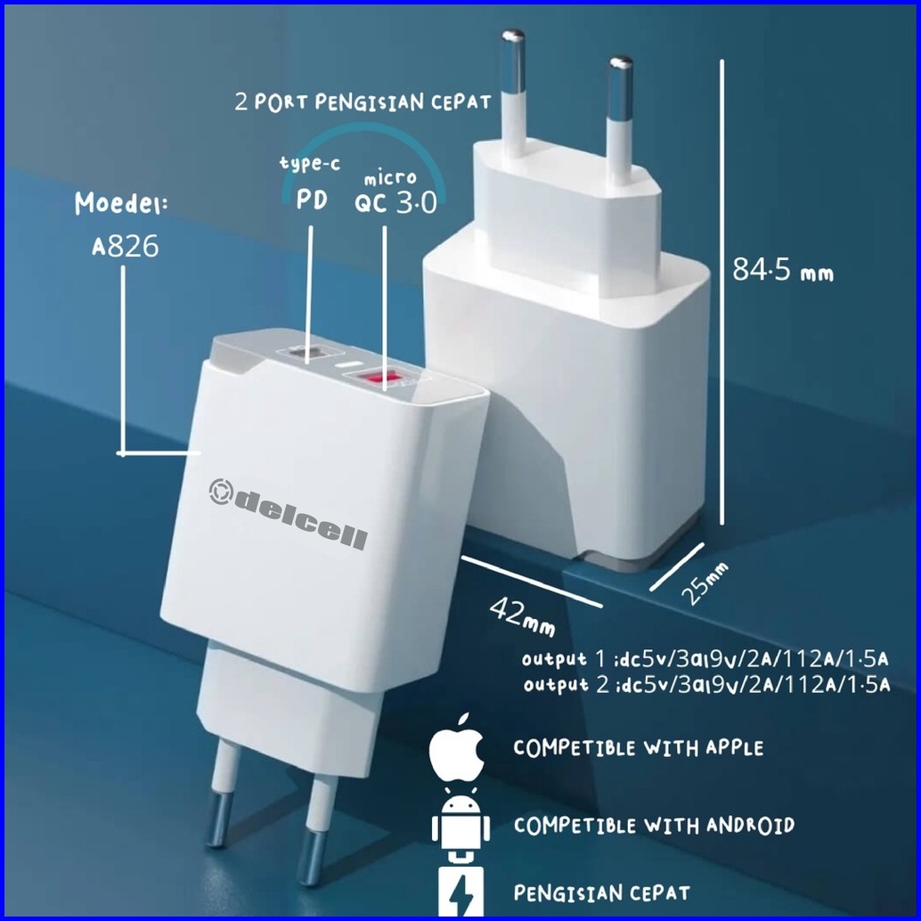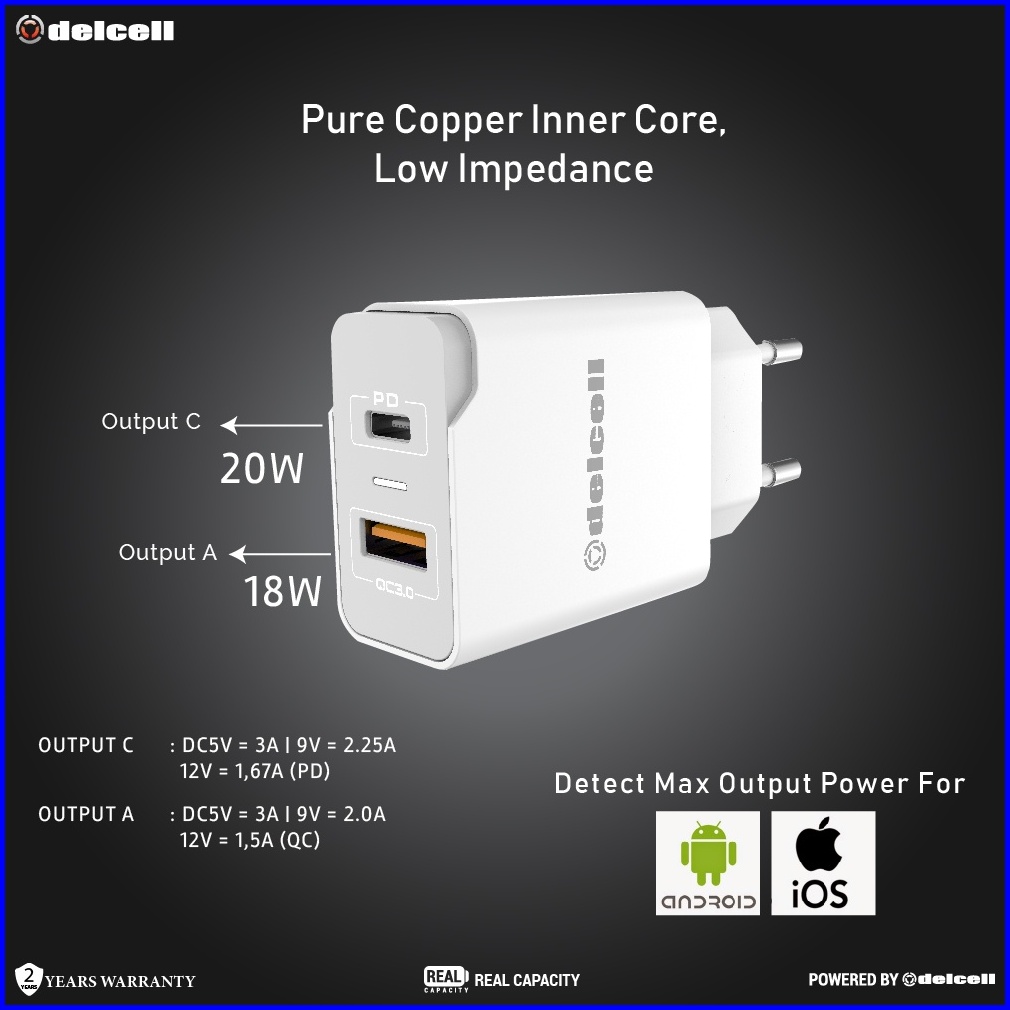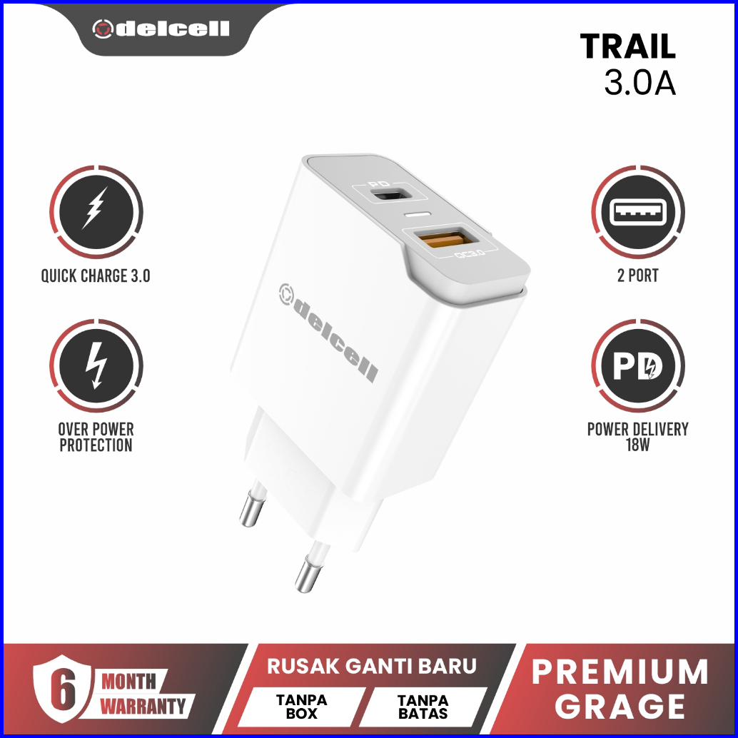Delcell Trail Adaptor Charger Original Qc 3.0 Pd 20w 2 Output Smart Charger
