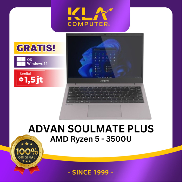 ADVAN Laptop Soulmate Plus AMD Ryzen 5 3500U RAM 8GB/16GB 256GB SSD 14" Windows 11 Original Garansi Resmi