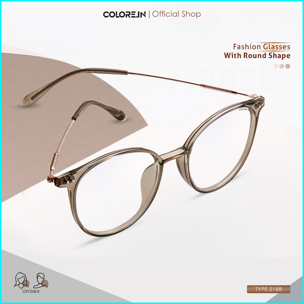 Colore.in Kacamata Photocromic Minus Anti Blueray Radiasi Wanita Pria 2 In 1 Bluecromic Anti Silau Bulat Metal Tr-90 Fra