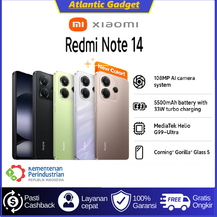 Hp Xiaomi Redmi Note 14 5G 8/256GB & 12/512GB | MediaTek Dimensity 7025 | Layar 6.67" AMOLED | 108 Triple Kamera OIS