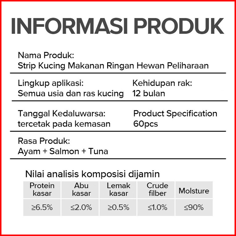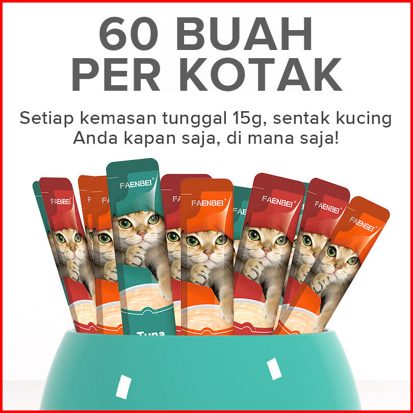 60pcs Kucing Makanan Ringan Hewan Peliharaan Cat Bar 15g Snack Kucing