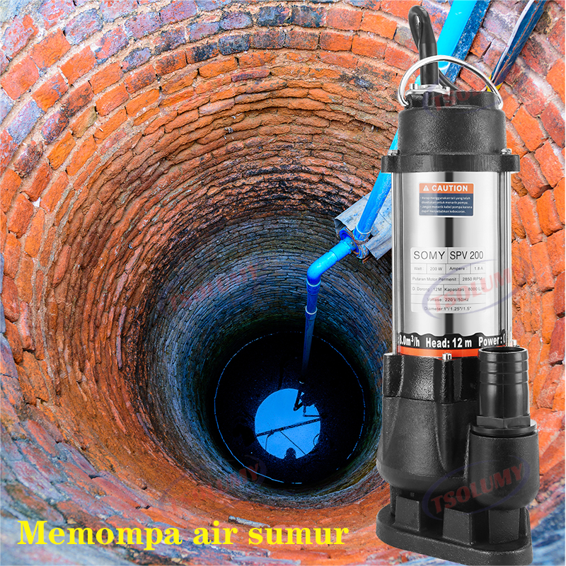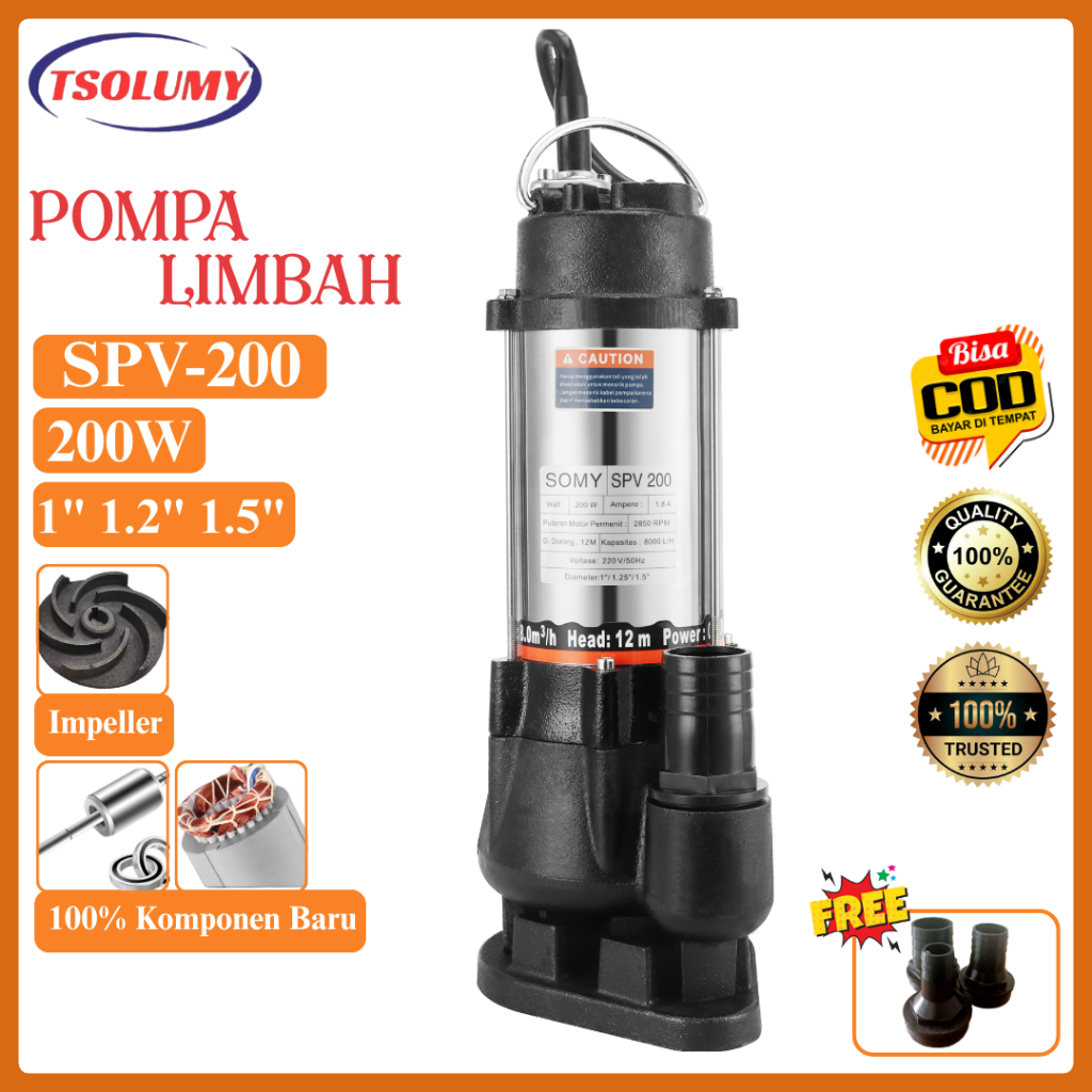 Tsolumy Pompa Celup Air Bersih Kotor Limbah 200Watt Type SPV-200 Include 3 Output 1/1.25 / 1.5inch