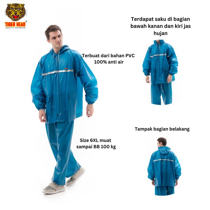 FLASH SALE TIGER HEAD JAS HUJAN SETELAN SUMO STRETCH 68275 BIRU HITAM