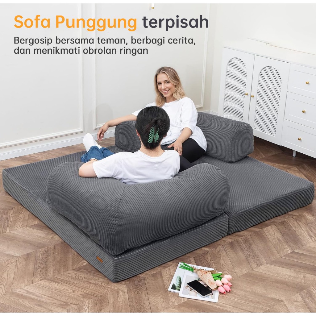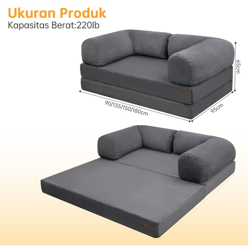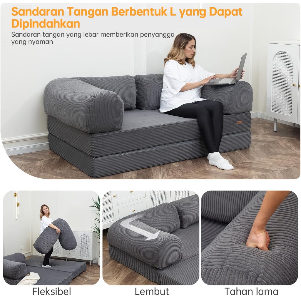 Sofa Bed Lipat Minimalis 3 Kursi Bahan Vacuum Anti Bau, Rangka Kuat & Sandaran Bisa Dilepas Sofa Abu