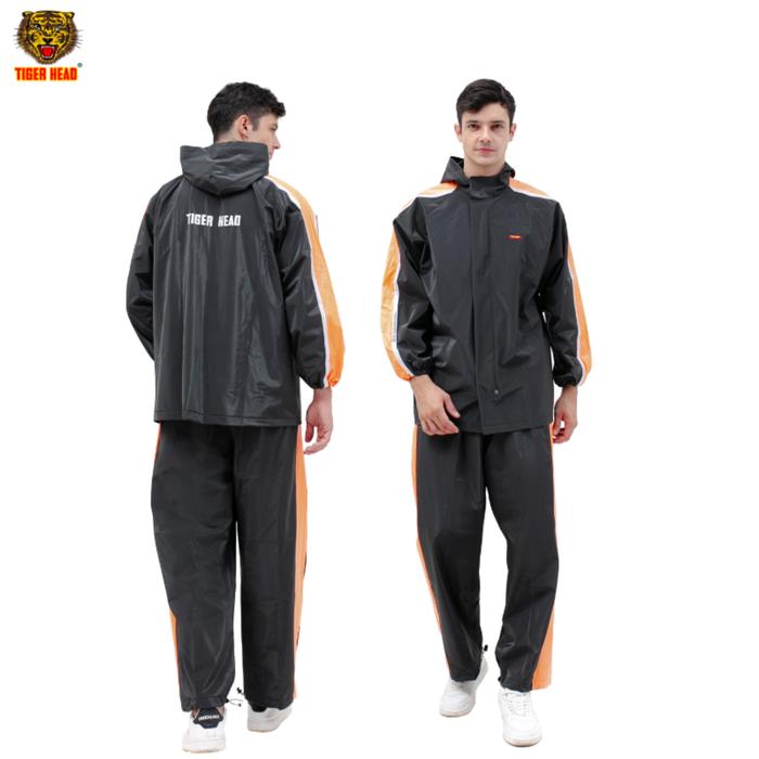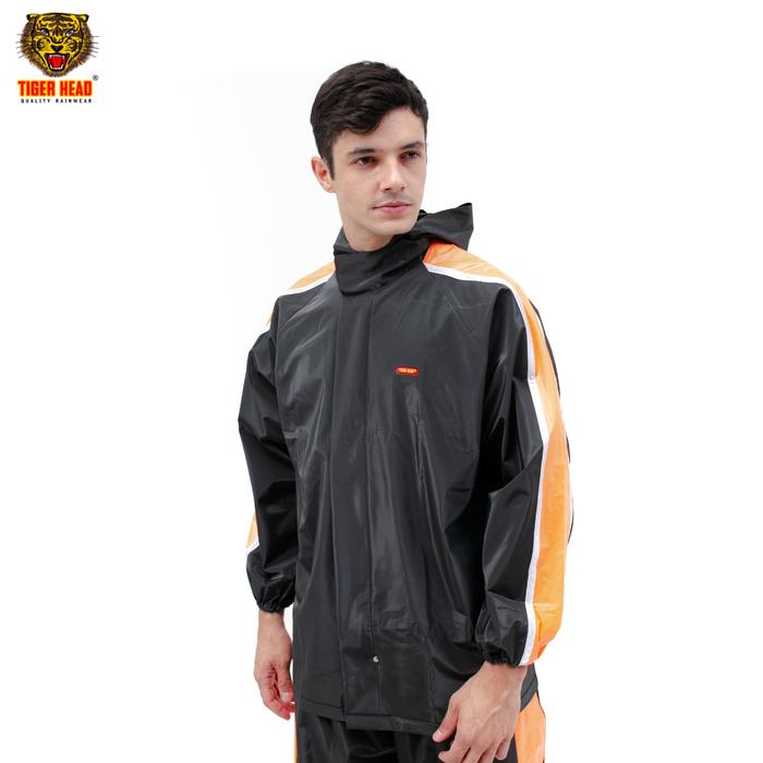 FLASH SALE TIGER HEAD JAS HUJAN SETELAN LOGAN 68260 PVC HITAM LIST ORANGE
