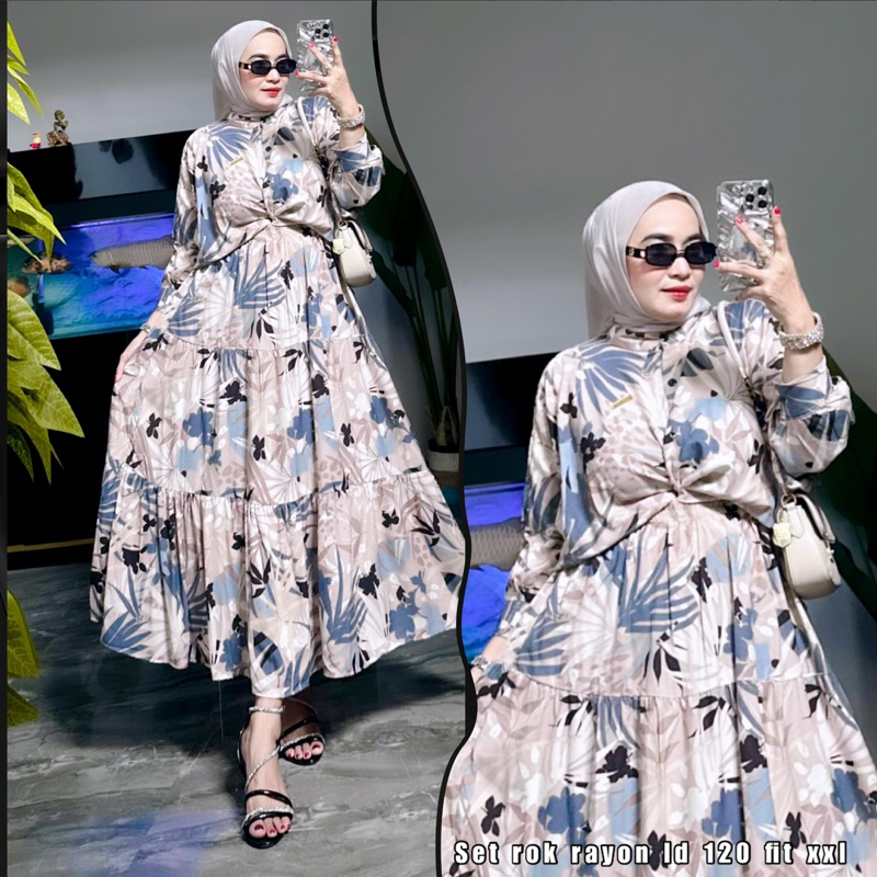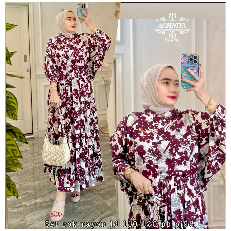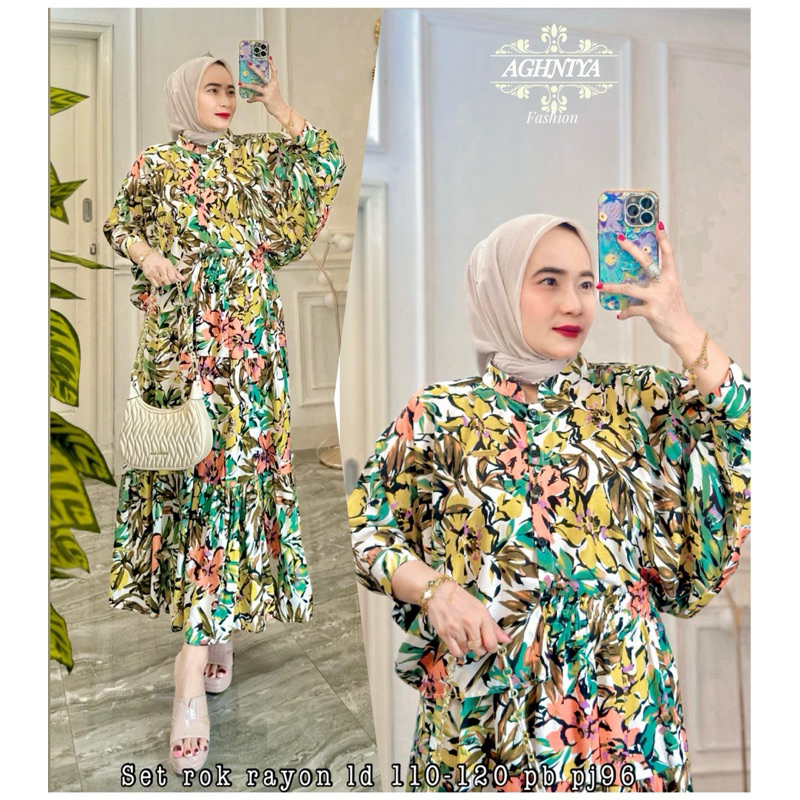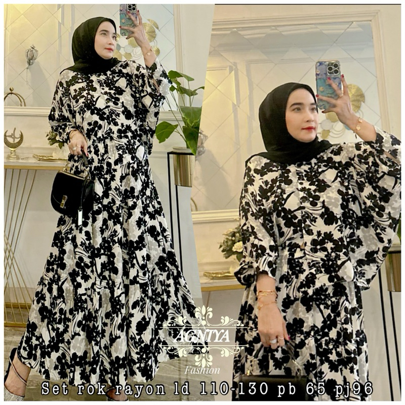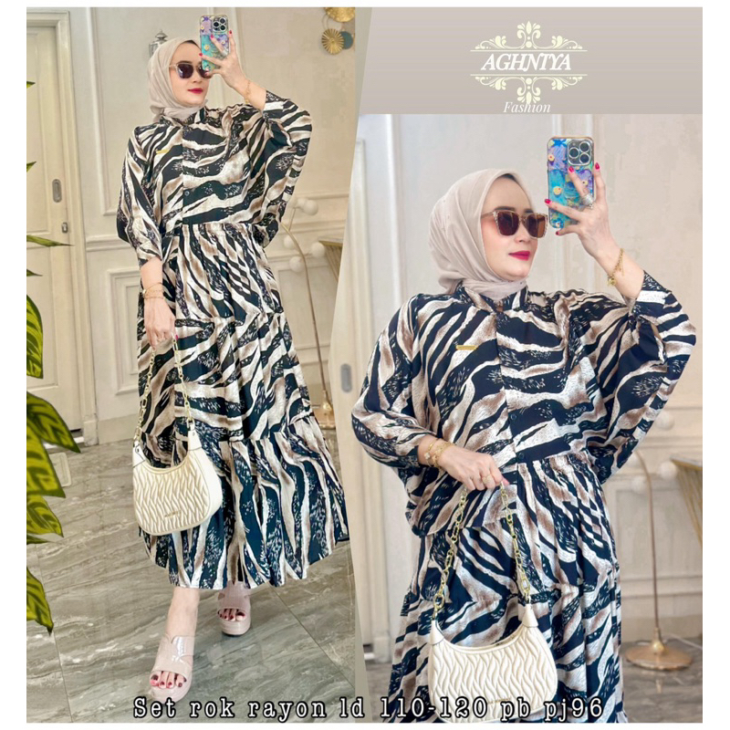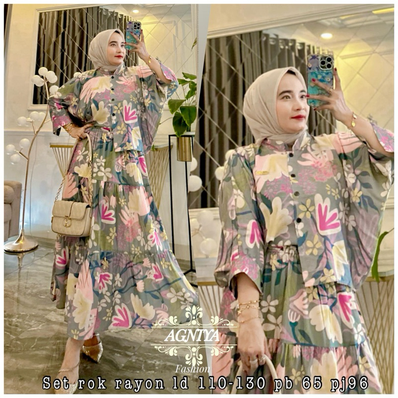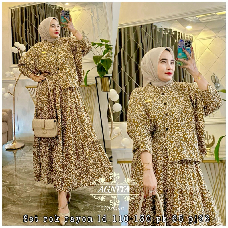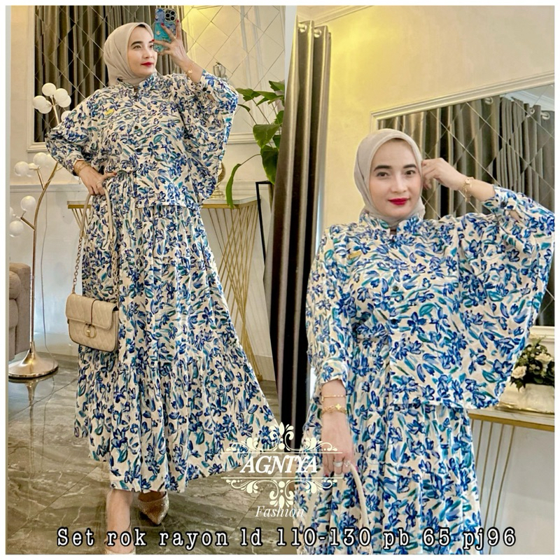 Agniya Setelan Rok Viral / Set Rok Rayon Motif
