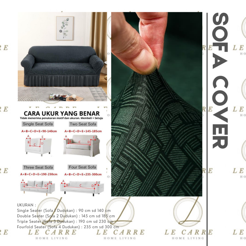 LECARRE Sofa Cover With Skirt Stripe Stretch / Sarung Alas Penutup Sofa Renda Elastis