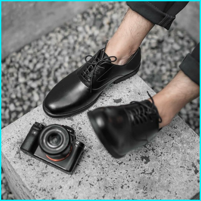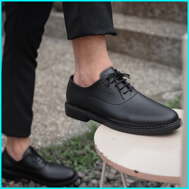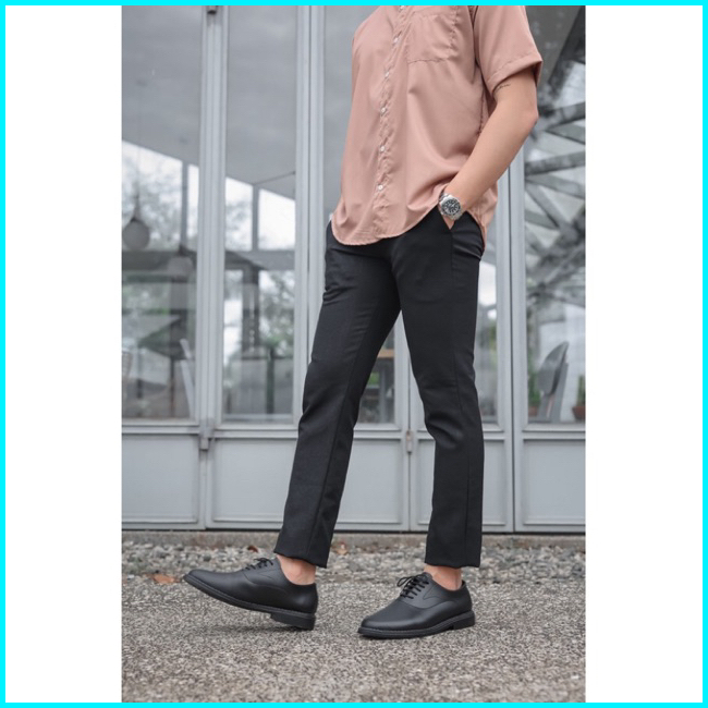 Sepatu Casual Pria Oxford Black By Worka Pantofel Kerja Kantor