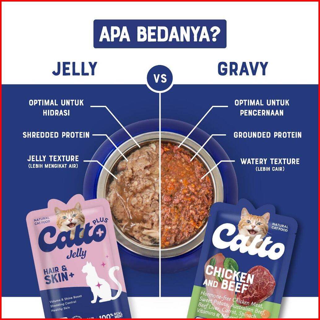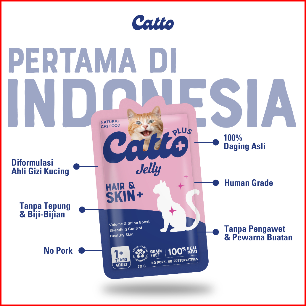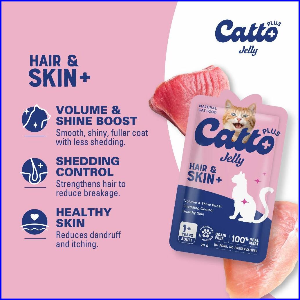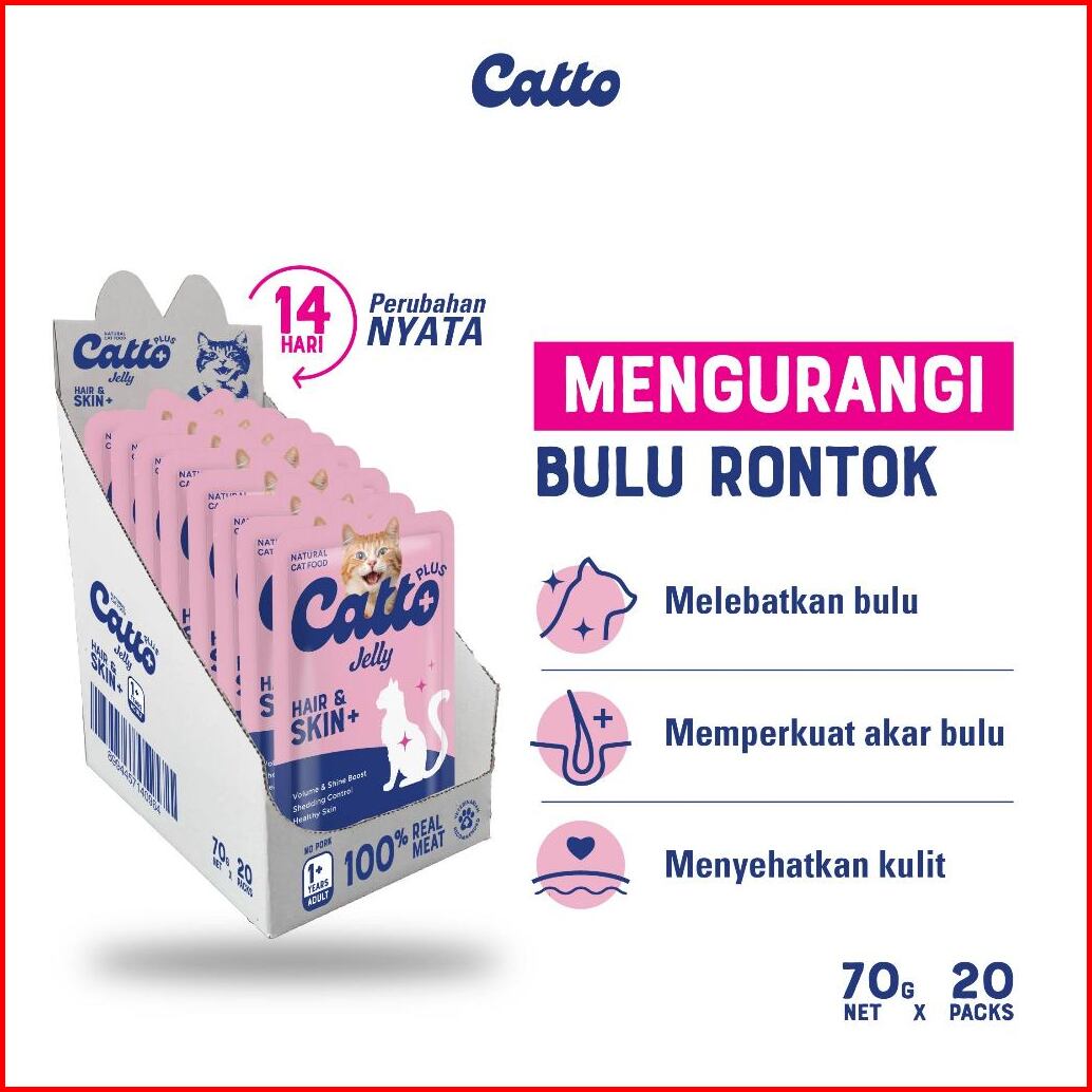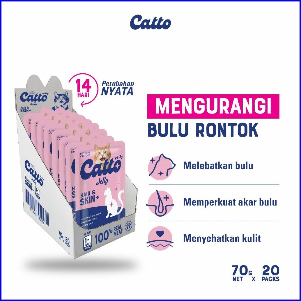 Catto Makanan Kucing Dewasa Plus Jelly Hair Skin 70gr X 20pcs Natural Jelly Wet Cat Food