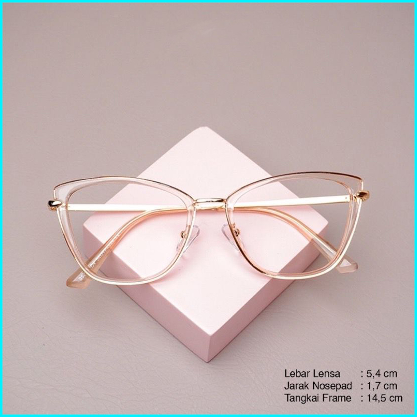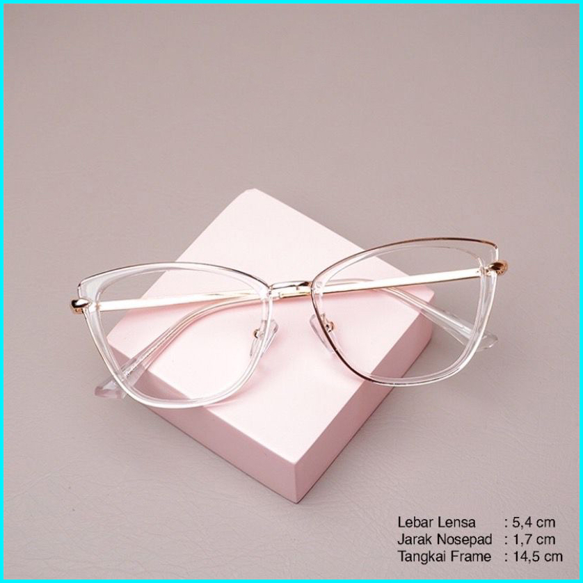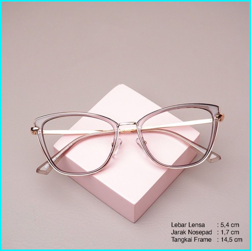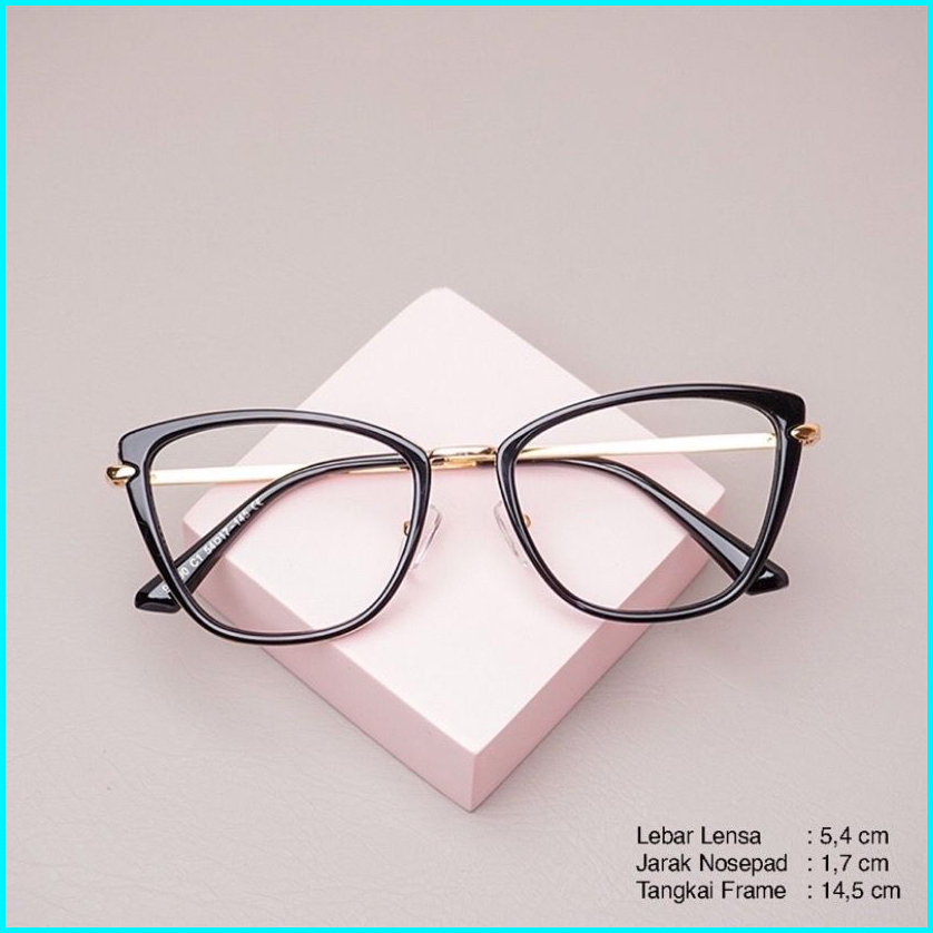Frame Kacamata Wanita Cat Eye Riku Gratis Lensa Anti Radiasi Kacamata Photocromic Anti Uv Bluecromic Cylinder Free Box D