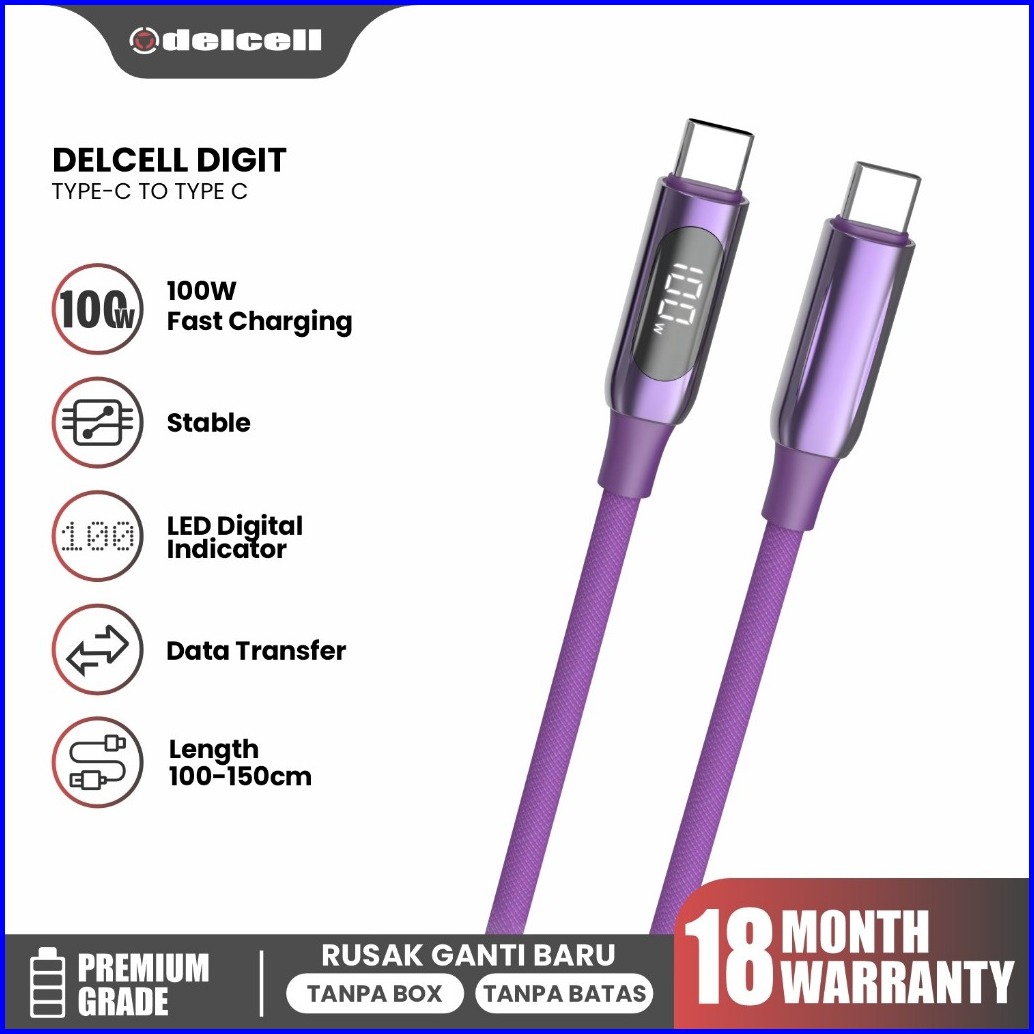 Delcell Kabel Zaxti Digit Kabel Data Fast Charging Type C To Type C Digital Display 100w