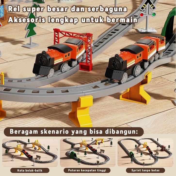 KiKiTOY Kereta Api Mainan Rel Panjang Rail King Kereta Api Indonesia Set Mainan Anak Laki Laki