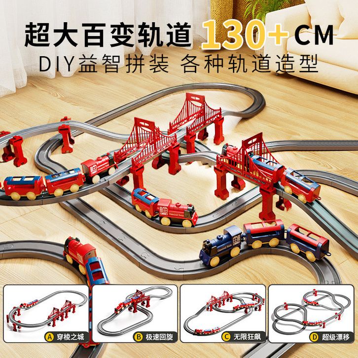 Free Gift 90/110/132 cm Mainan Kereta Api,peraakitan DIY Latih Mainan Trek,Railway Train Toy Set