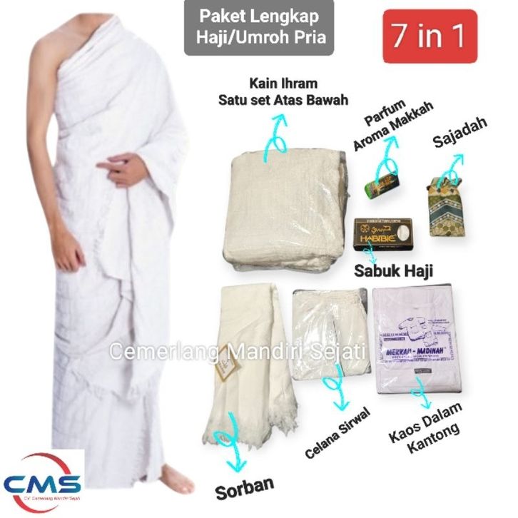 TERLARIS Perlengkapan Umroh/haji Pria Paket Lengkap 7 In 1 Pakaian Haji/ Umroh Pria/ Baju Ihram Pria Lengkap