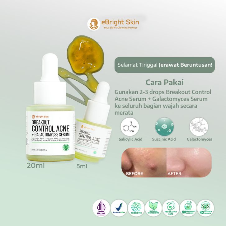 serum acne eBright Skin Serum Jerawat Bruntusan - Breakout Control Acne + Galactomyces Serum