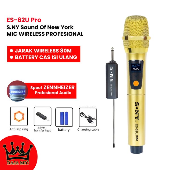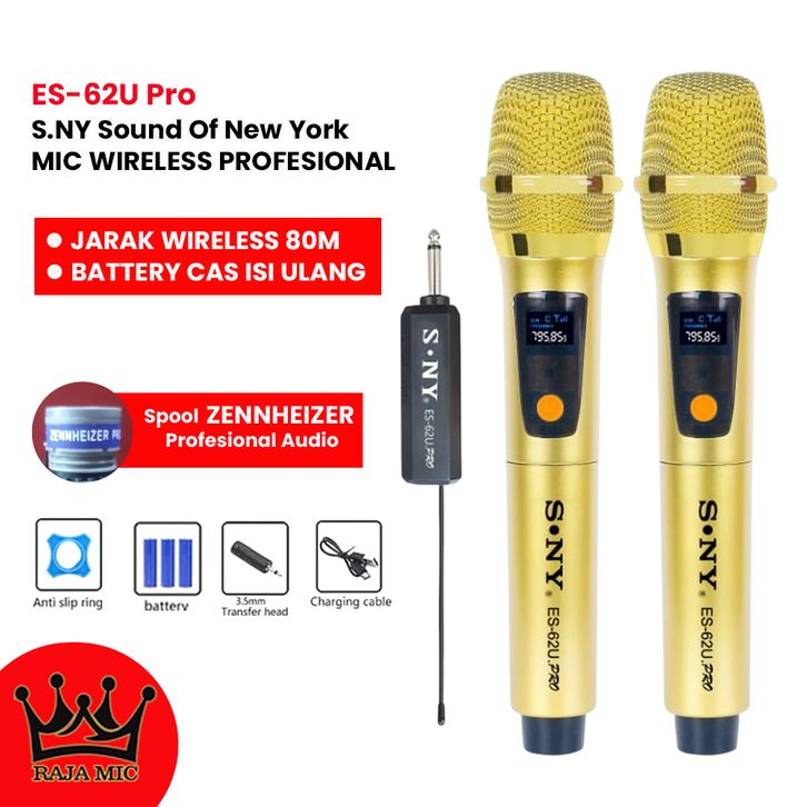 S.NY Sound Of New York Mic Wireless Karaoke ES-62U Pro Microphone Bluetooth Mikropon Tanpa Kabel