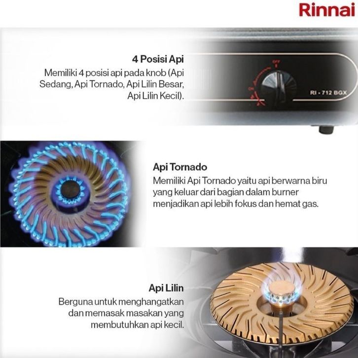 Kompor Gas Rinnai RI712BGX - Kompor Rinnai 2 Tungku Api Tornado RI712-BGX