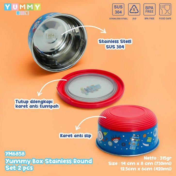 JOELHOUSE2 IN 1 SET LUNCHBOX/KOTAK MAKAN/KOTAK BEKAL/TEMPAT SOP/CONTAINER SOP YUMMY STAINLESS SUS 304 JH143